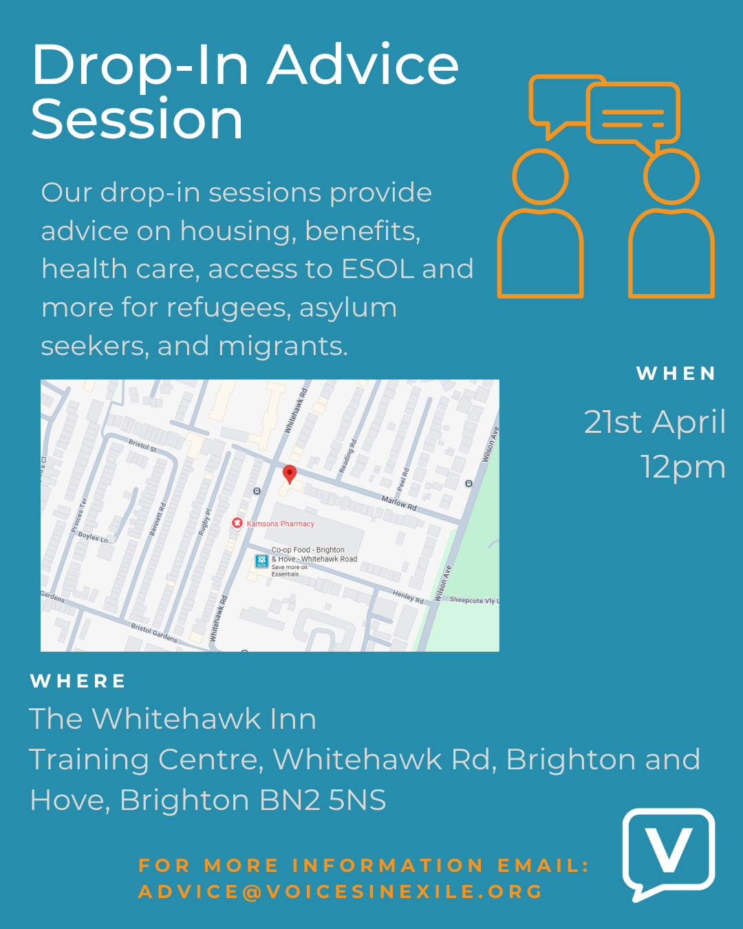 Drop-in advice session providing advice on housing, benefits, health care, access to ESOL and more for refugees, asylum seekers, and migrants.