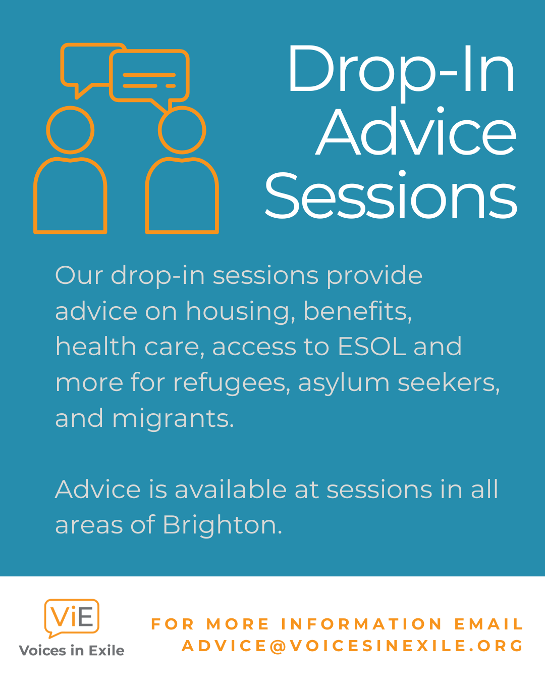Drop-in advice session providing advice on housing, benefits, health care, access to ESOL and more for refugees, asylum seekers, and migrants.