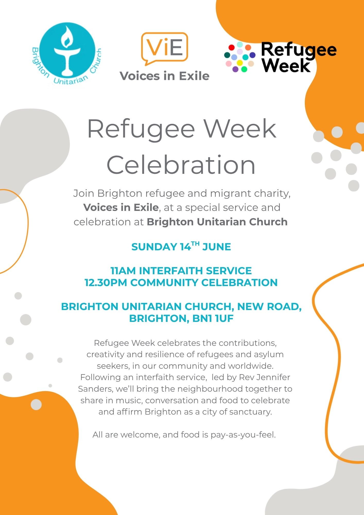 Join us for an interfaith community gathering at Brighton Unitarian Church for the launch of Refugee Week.
